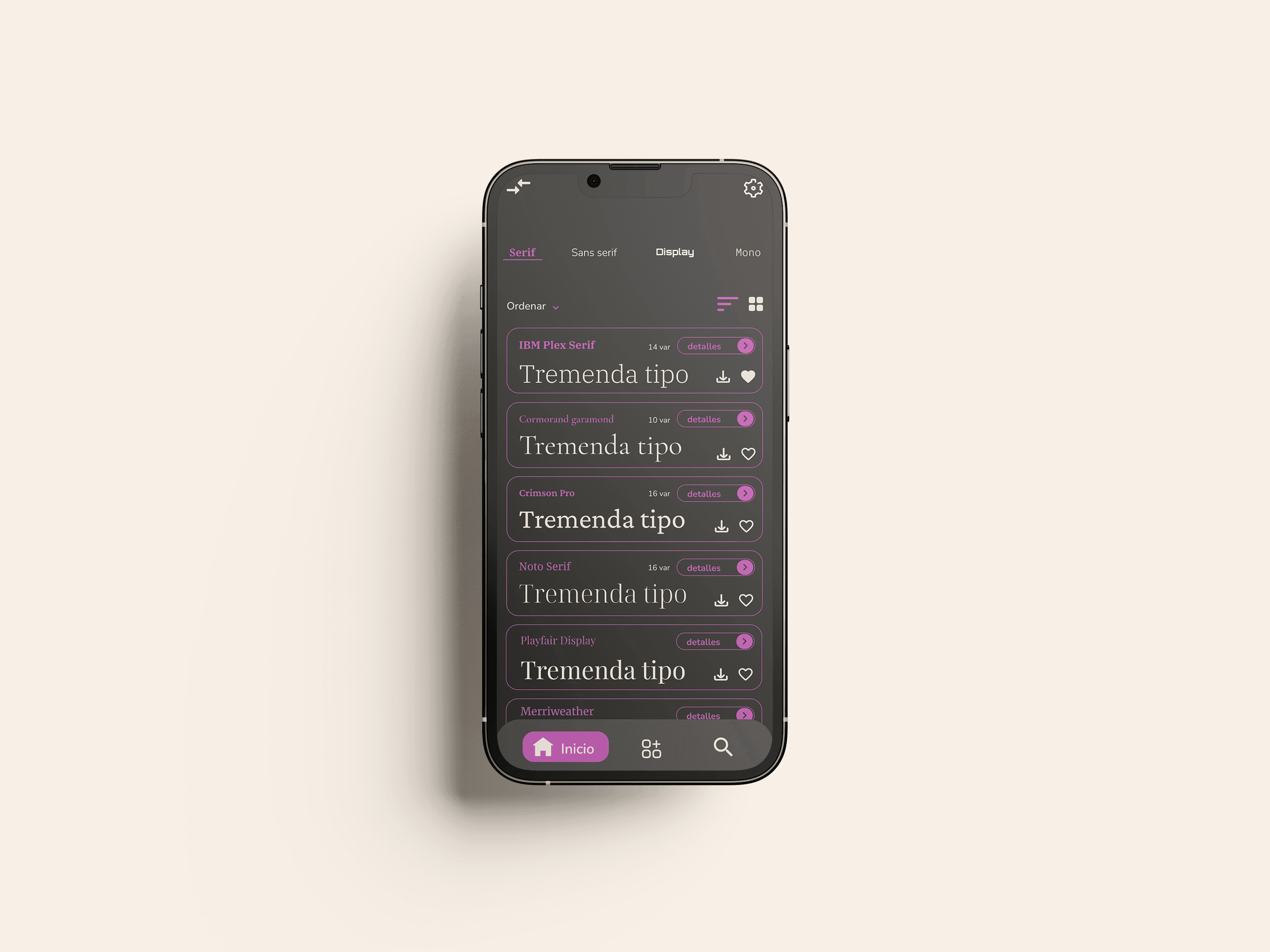 Fontree es una web app tipográfica que permite buscar y descargar fuentes directamente a su dispositivo, de manera fácil y rápida. Le permite al usuario probar y comparar las tipografías de su elección, pudiendo obtener información que le ayude a encontrar la fuente correcta para su proyecto.